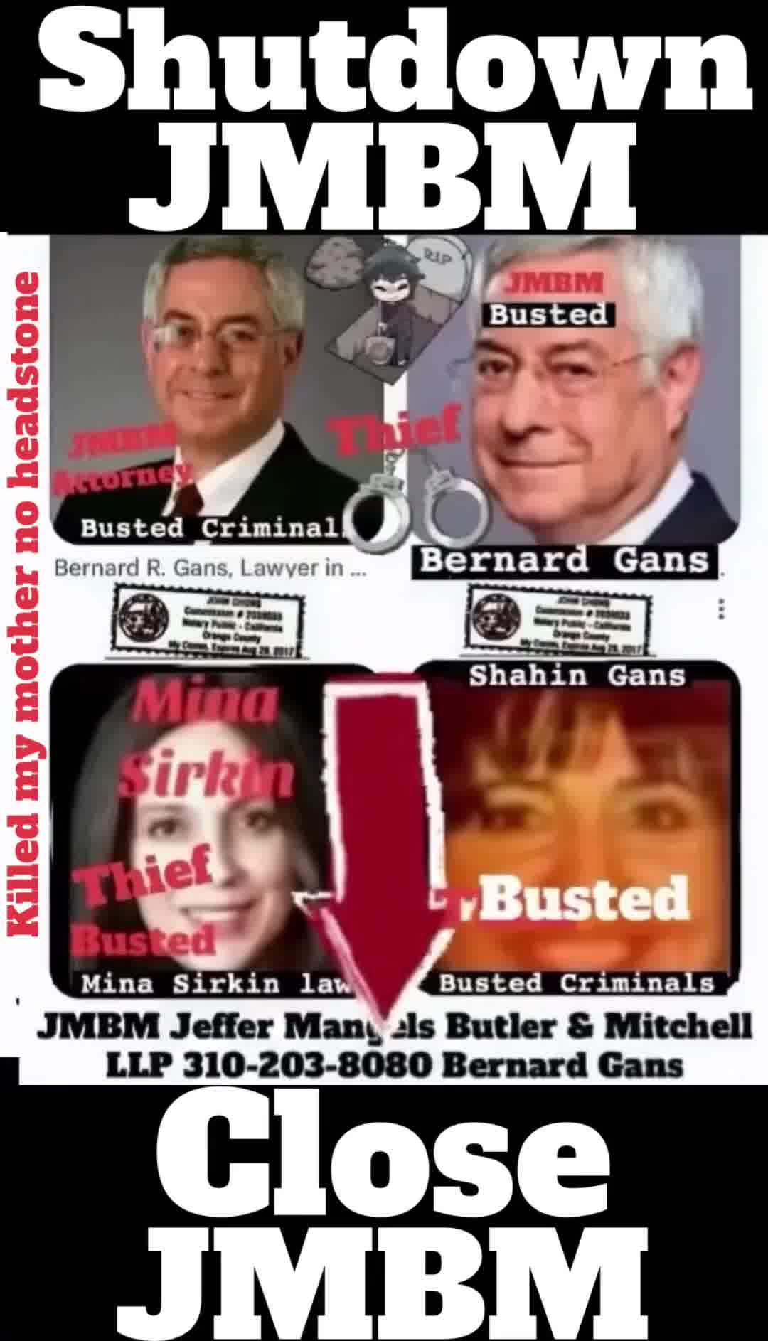 Suing JMBM partner $500,000,000,000.00 Busted criminal attorneys Jeffer Mangels Butler & Mitchell LLP lawyer Bernard Reginald Gans #57068 Bernard Gans Mina Sirkin law group JMBM killed my mom to get her fortune. Suing JMBM partner $500,000,000,000.00 Busted criminal attorneys Jeffer Mangels Butler & Mitchell LLP lawyer Bernard Reginald Gans #57068 Bernard Gans Mina Sirkin law group JMBM killed my mom to get her fortune..