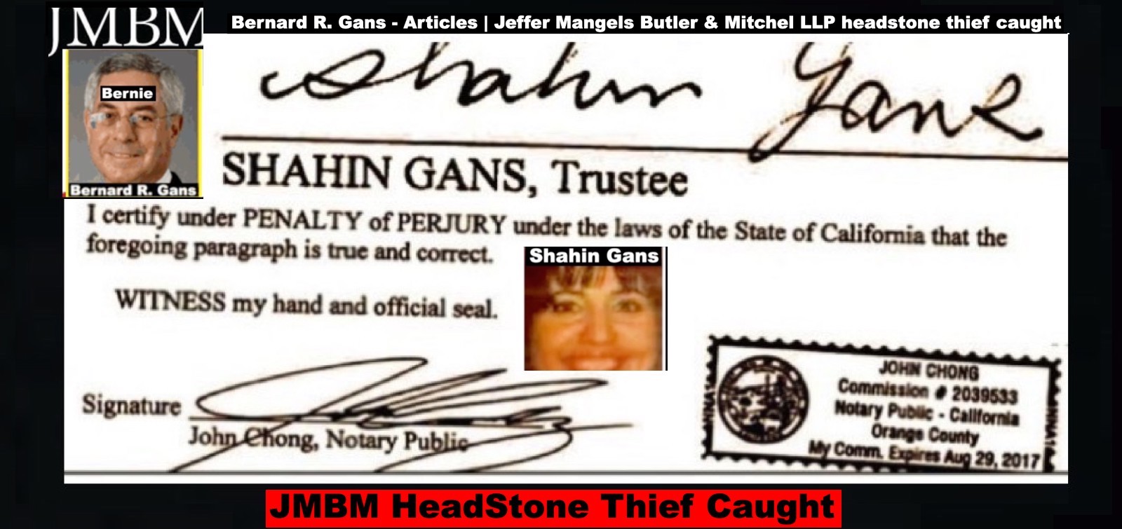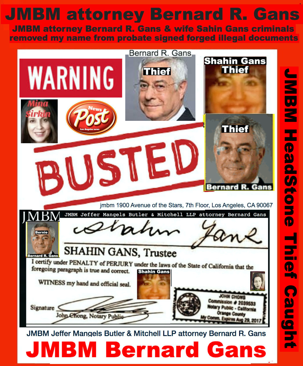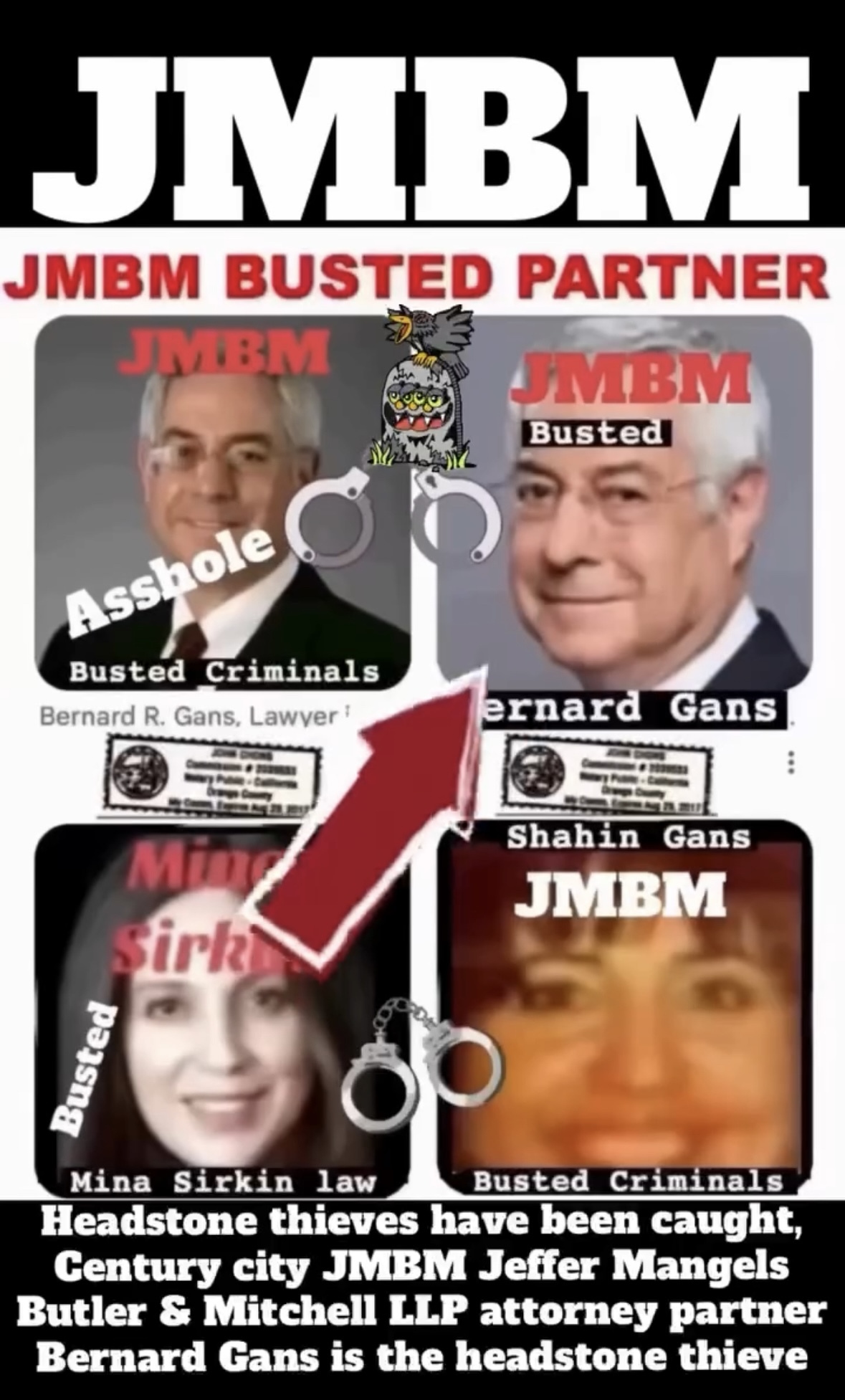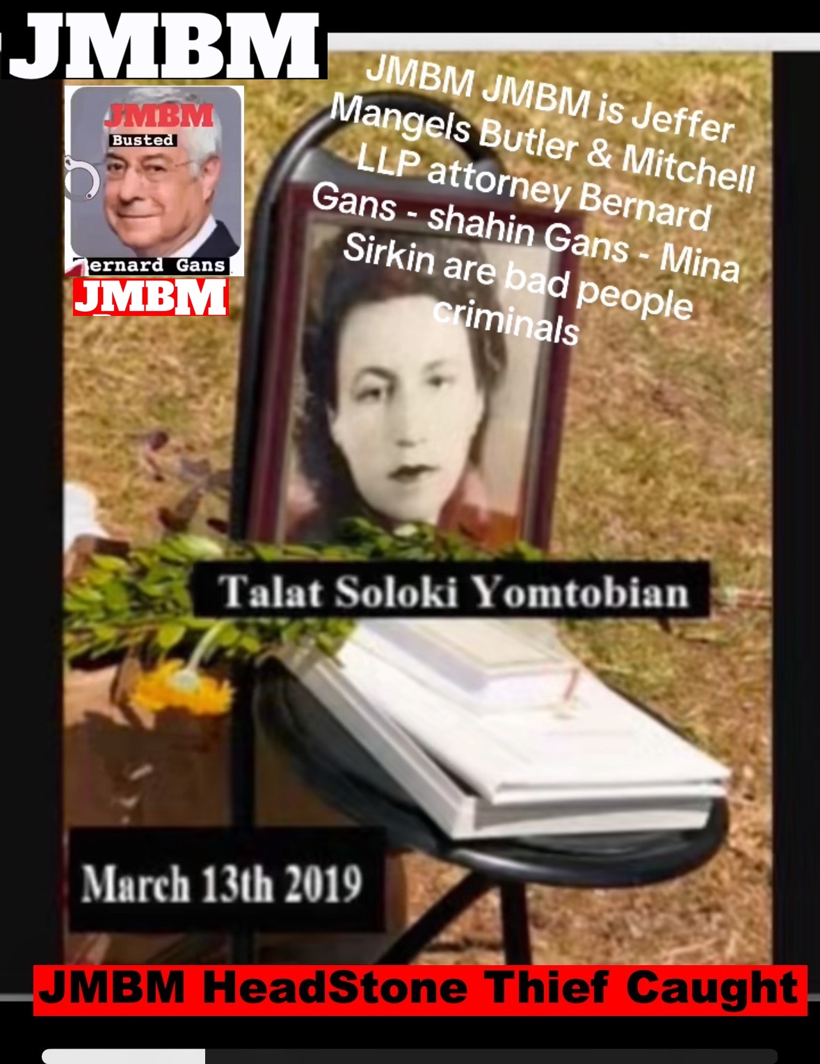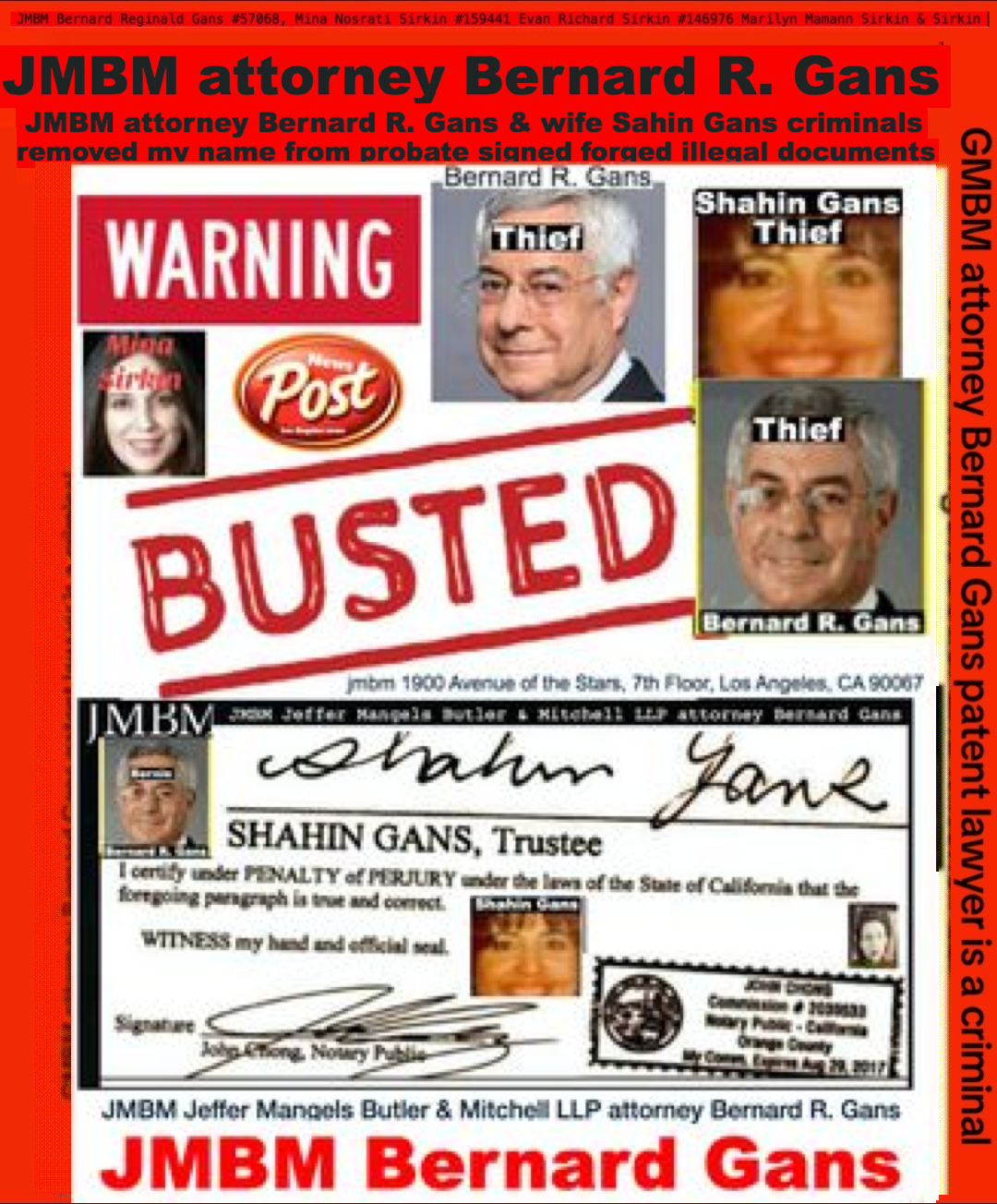 Suing JMBM partner $500,000,000,000.00 Busted criminal attorneys Jeffer Mangels Butler & Mitchell LLP lawyer Bernard Reginald Gans #57068 Bernard Gans Mina Sirkin law group JMBM killed my mom to get her fortune. Suing JMBM partner $500,000,000,000.00 Busted criminal attorneys Jeffer Mangels Butler & Mitchell LLP lawyer Bernard Reginald Gans #57068 Bernard Gans Mina Sirkin law group JMBM killed my mom to get her fortune..