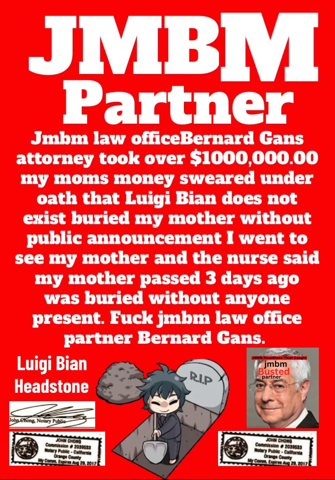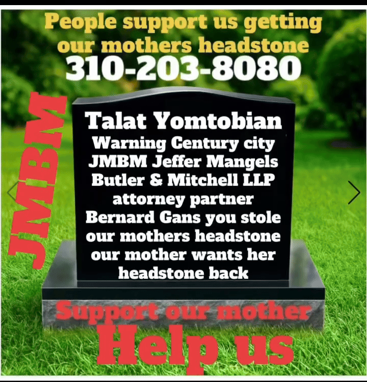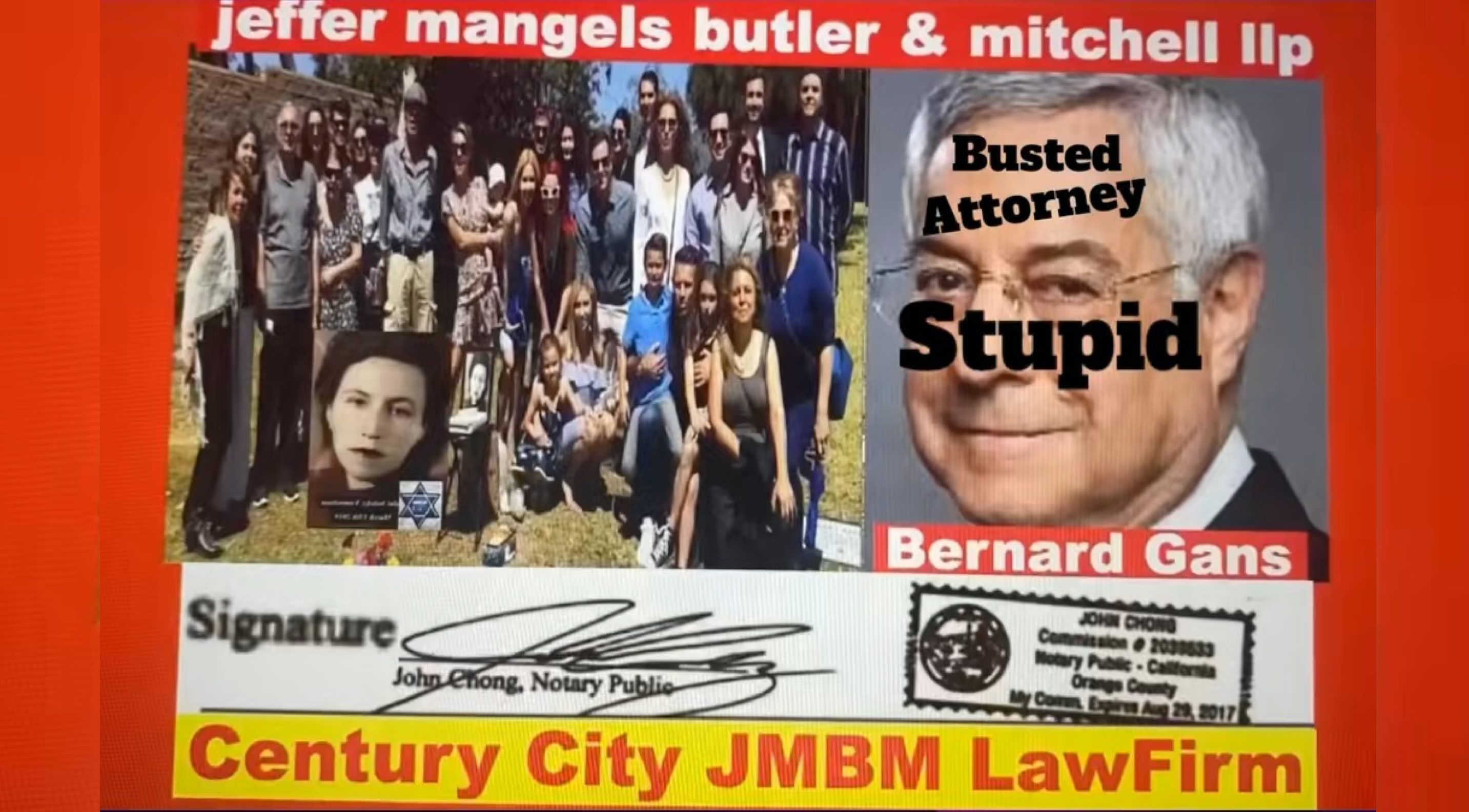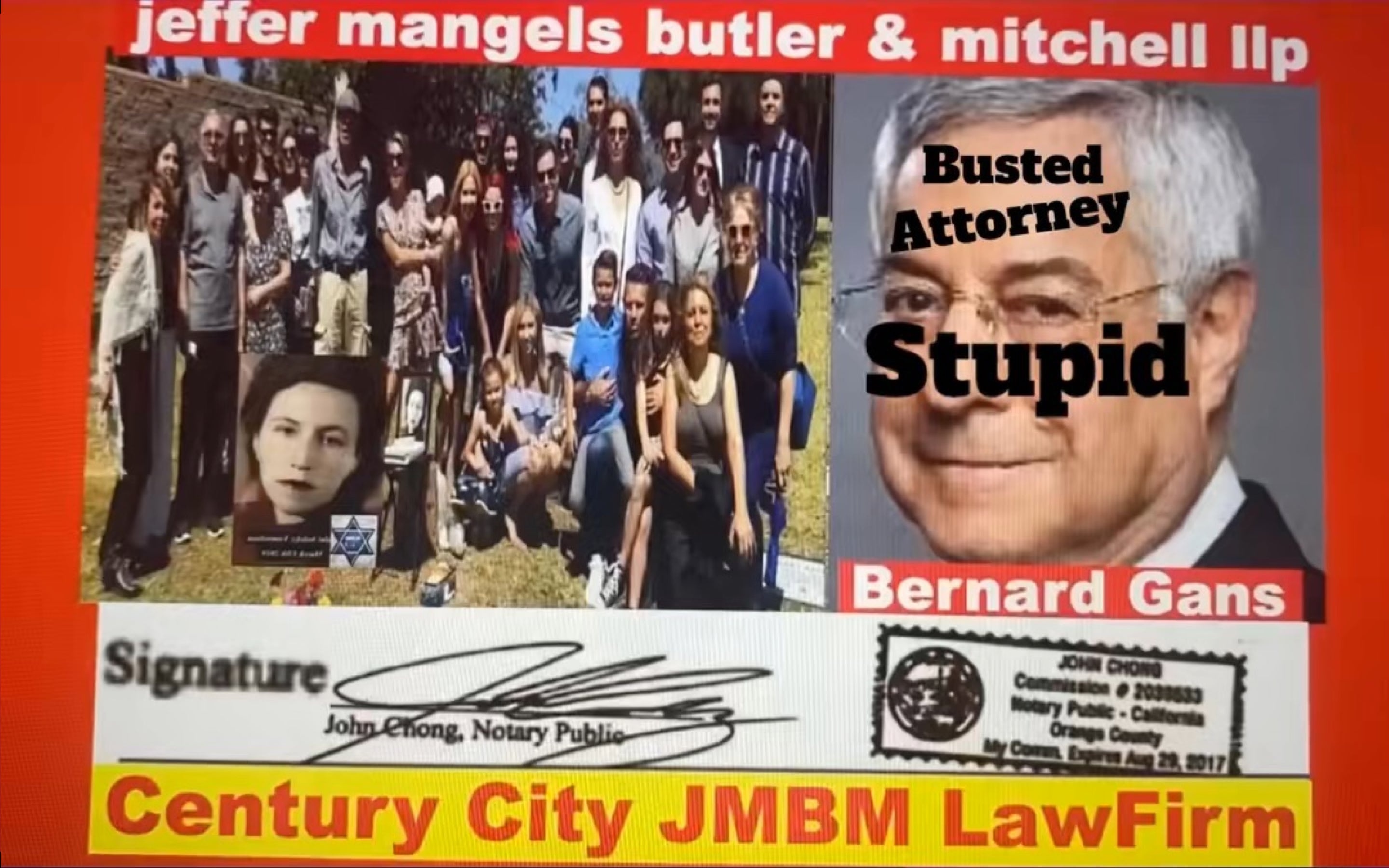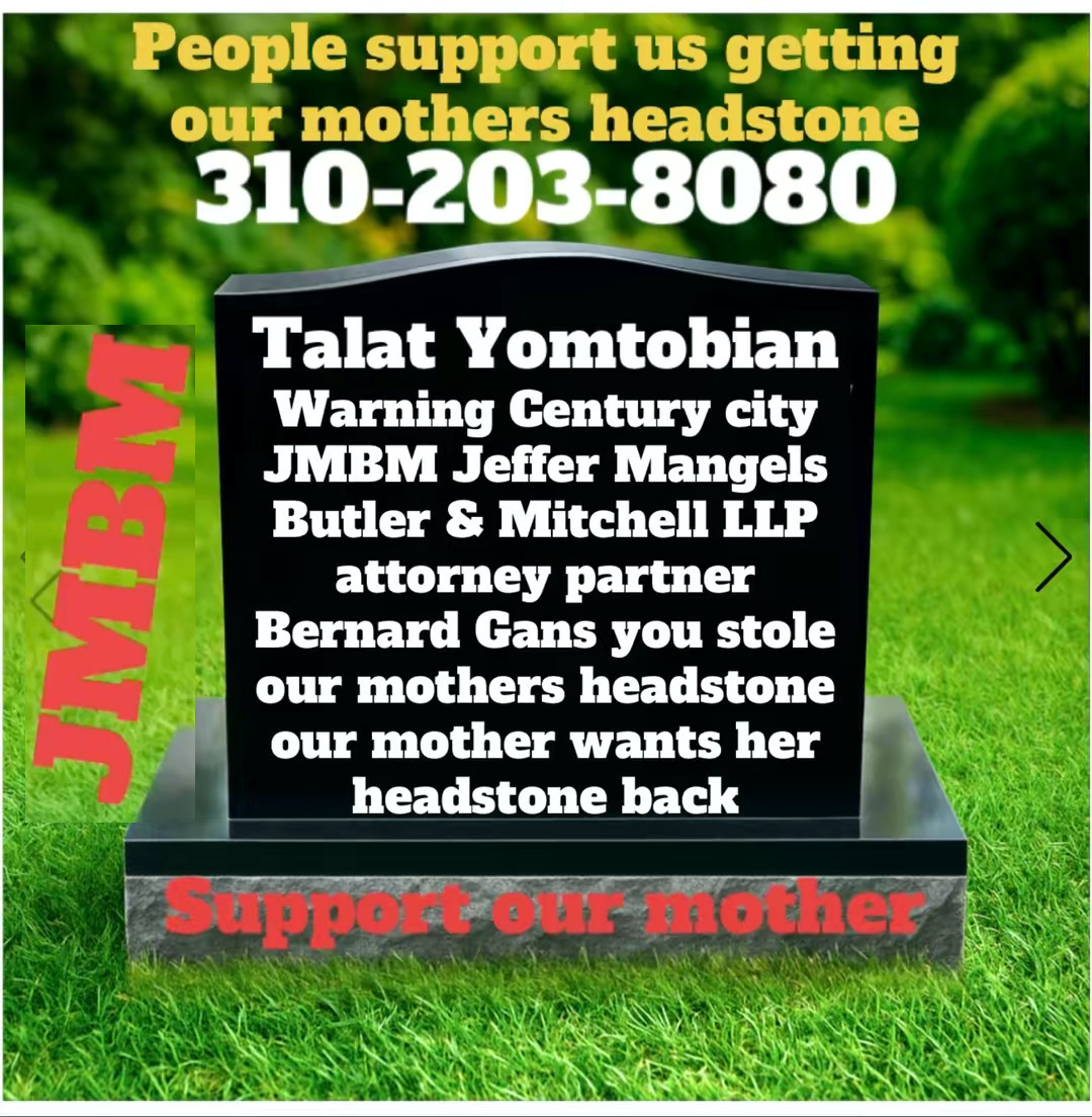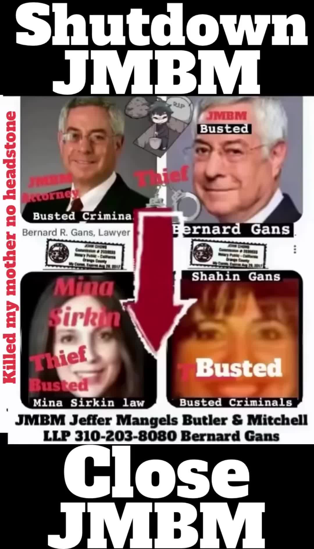 Suing JMBM partner $500,000,000,000.00 Busted criminal attorneys Jeffer Mangels Butler & Mitchell LLP lawyer Bernard Reginald Gans #57068 Bernard Gans Mina Sirkin law group JMBM killed my mom to get her fortune. Suing JMBM partner $500,000,000,000.00 Busted criminal attorneys Jeffer Mangels Butler & Mitchell LLP lawyer Bernard Reginald Gans #57068 Bernard Gans Mina Sirkin law group JMBM killed my mom to get her fortune.