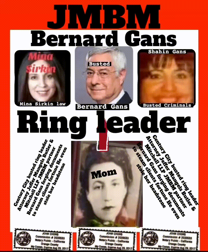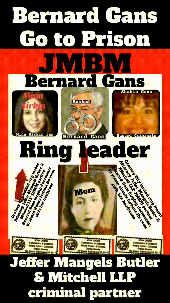 Suing JMBM partner $500,000,000,000.00 Busted criminal attorneys Jeffer Mangels Butler & Mitchell LLP lawyer Bernard Reginald Gans #57068 Bernard Gans Mina Sirkin law group JMBM killed my mom to get her fortune. Suing JMBM partner $500,000,000,000.00 Busted criminal attorneys Jeffer Mangels Butler & Mitchell LLP lawyer Bernard Reginald Gans #57068 Bernard Gans Mina Sirkin law group JMBM killed my mom to get her fortune. Suing JMBM partner $500,000,000,000.00 Busted criminal attorneys Jeffer Mangels Butler & Mitchell LLP lawyer Bernard Reginald Gans #57068 Bernard Gans Mina Sirkin law group JMBM killed my mom to get her fortune.